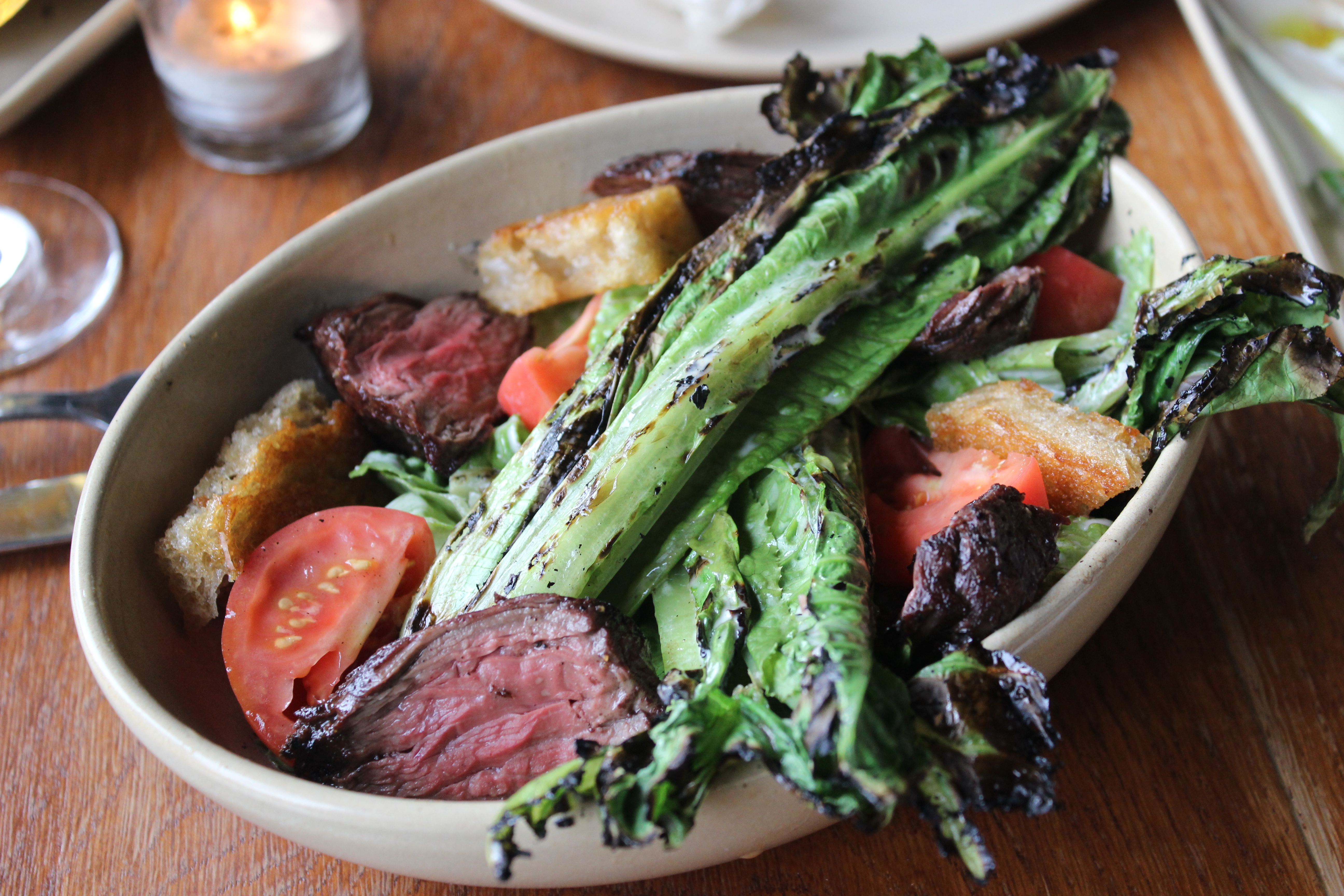 I liked the smokiness in the Grilled Caesar Salad (Heirloom Tomatoes, Country Croutons, Bacon, $9) and we added Grilled Hanger Steak for $5.  I don’t remember tasting bacon or Caesar dressing, but we split this so maybe I didn’t serve myself all of the ingredients.