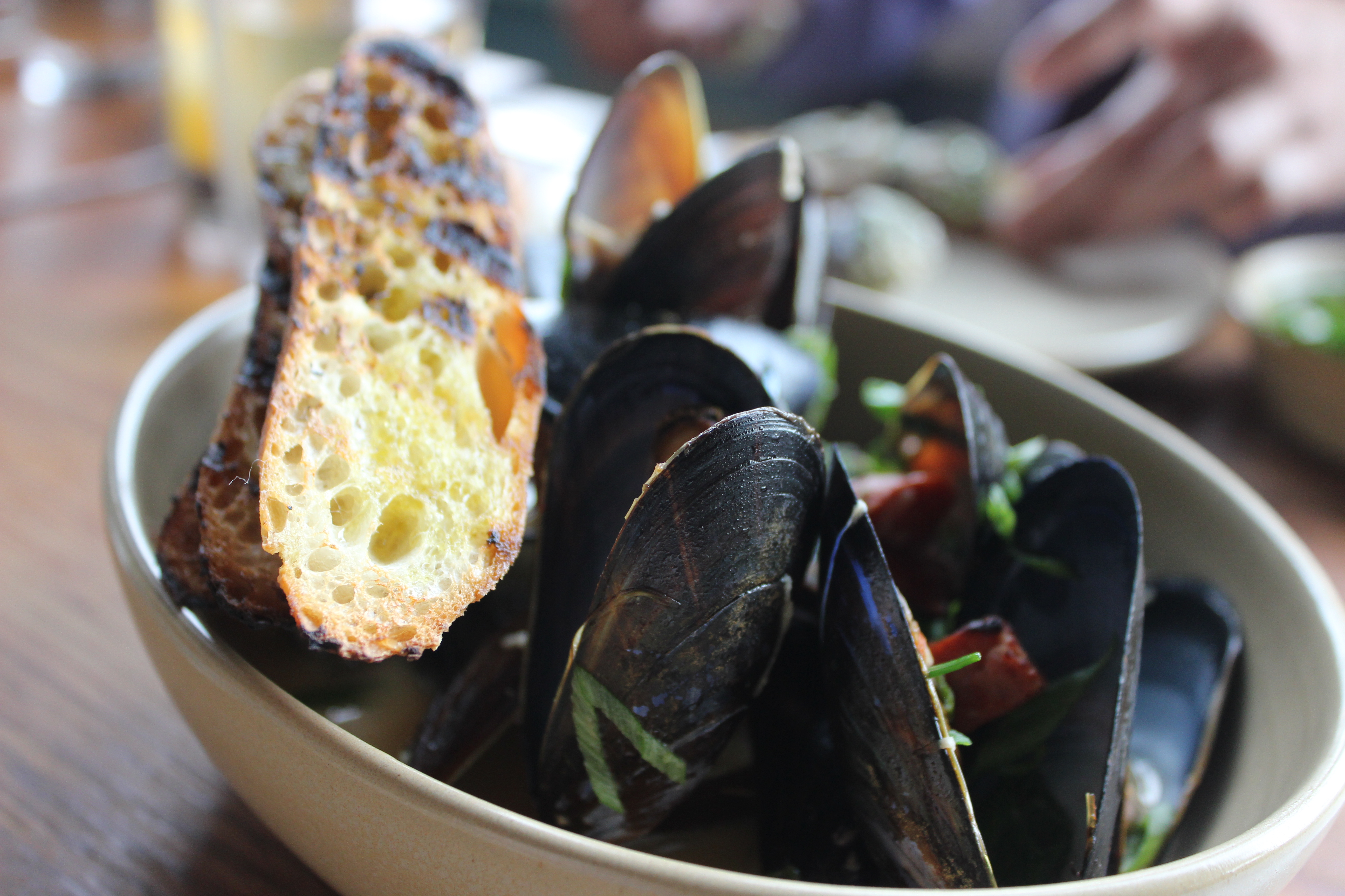 Dana Ryan has worked in several popular restaurants including RN74, Gather and State Bird Provisions and he’s now the executive chef at Townie at the age of 27.  Impressive, right?  The restaurant opened a few weeks ago in the former Caffe Venezia space.  I was invited to check it out and brought my food blogger friends along: Ben from Focus Snap Eat, Sandy from Food Hoe and Brenda from Bites & Bourbon.  We worked our way through almost the entire menu – gotta love friends who love to eat!