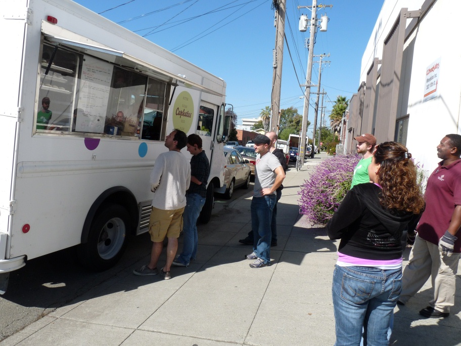 Cupkates is the self-proclaimed first mobile cupcakery in the Bay Area. Kate McEachern bakes and frosts in a commercial kitchen, and then drives a truck loaded with cupcakes through the streets of Berkeley. If you’re lucky, you can find out where she’s going to park (on twitter, of course…like all the new food carts these days) and meet her on the street. If not, she makes free deliveries in Berkeley if you order of 2 dozen or more cupcakes.