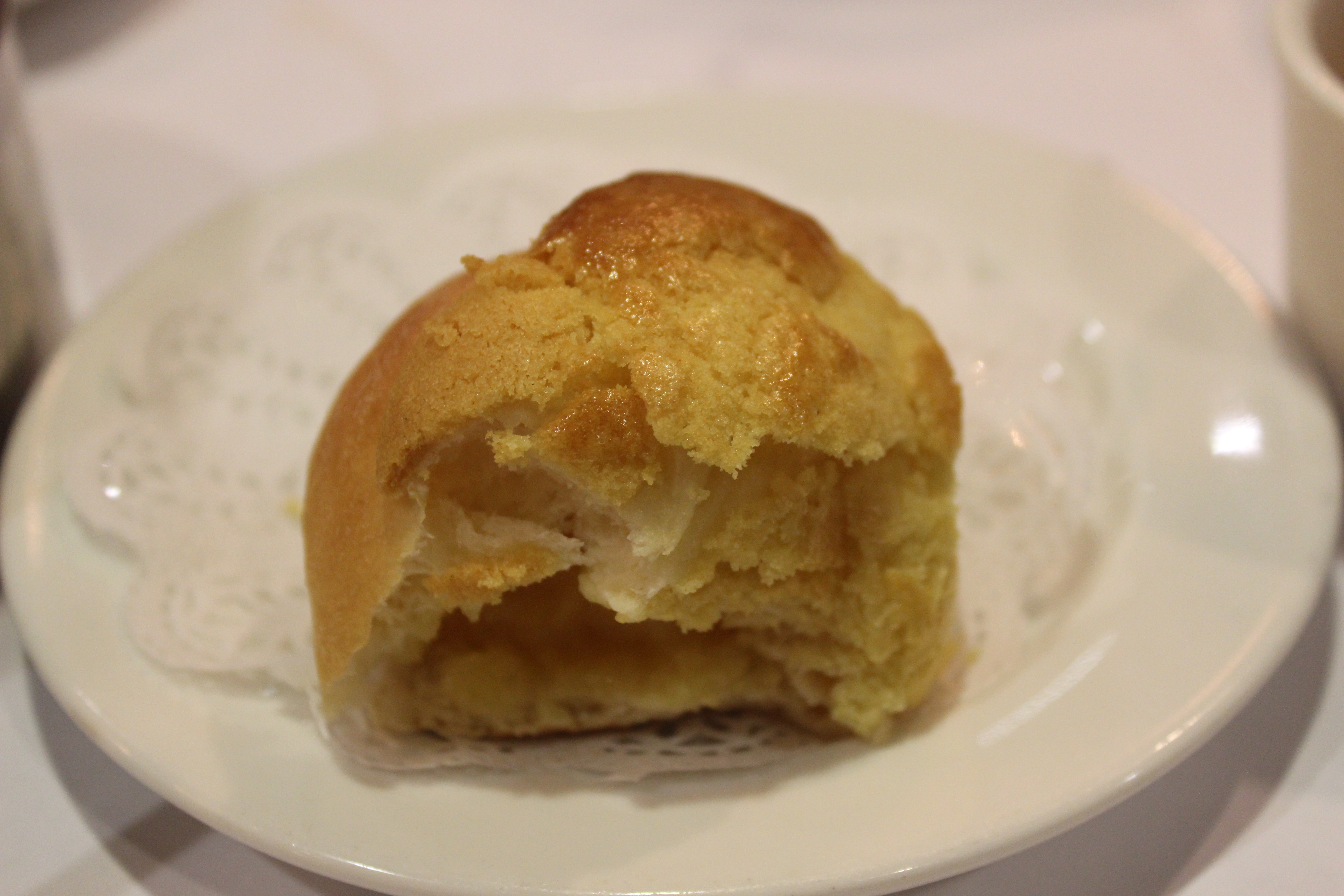 I wasn’t really feeling the Durian Puffs (now I know why they call it the “stinky fruit”), but I loved this pineapple bun with custard filling because the dough was so soft and the cream filling not-too-sweet.