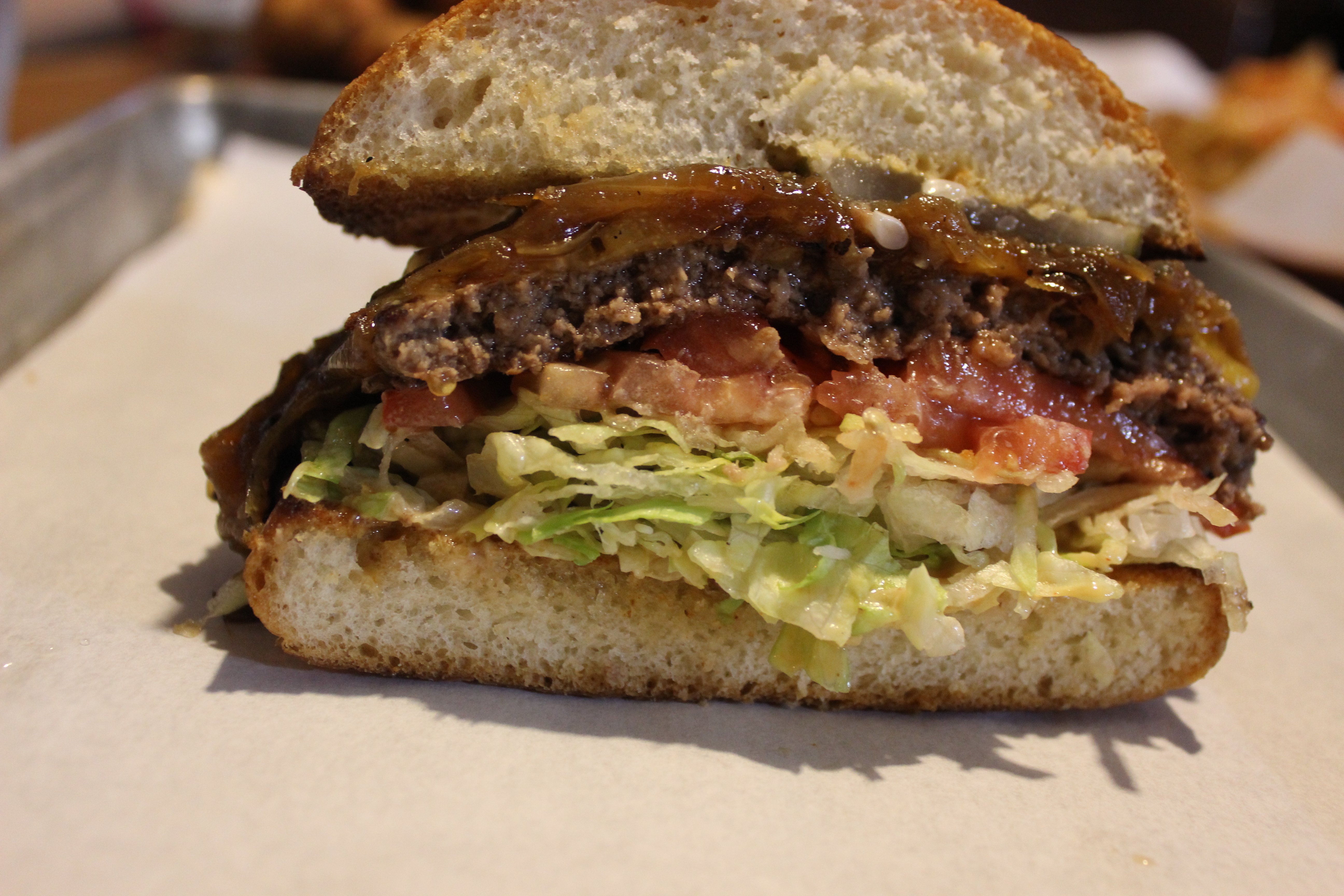 Slightly overcooked, but still pretty tender and juicy, the Half Orange Burger (quarter pound of Marin Sun Farms 100% grass-fed beef, lettuce, tomato, onions, pickles, THO sauce, $6.95) didn’t beat my favorite burger in the East Bay, but it was legit.