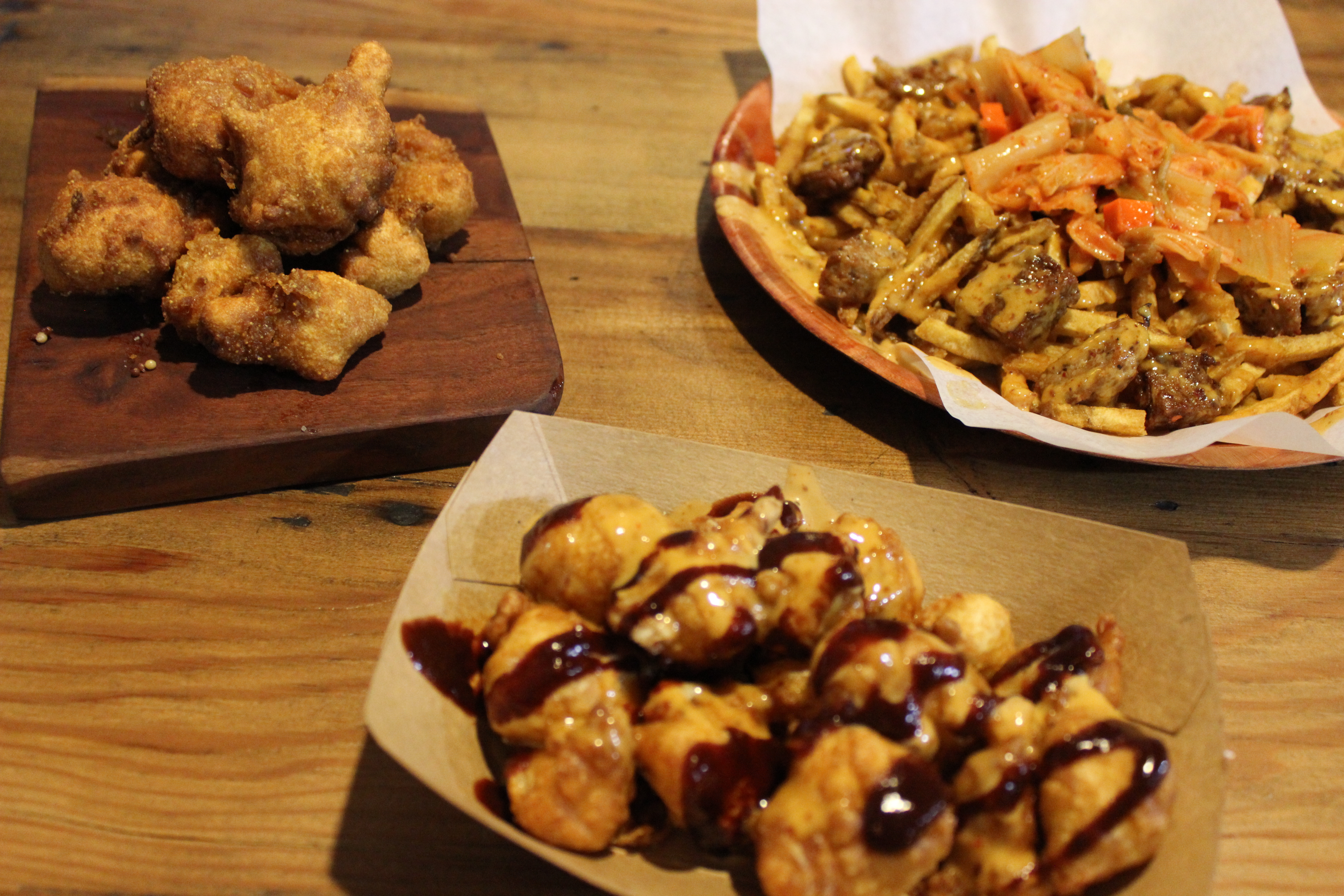 The Beer-Battered Cheese Curds ($5.95) weren’t really memorable, but I could never forget the Salchipapas ($8.95). It’s basically a pile of fries, topped with sausage, chorizo, THO sauce and tons of kimchi.