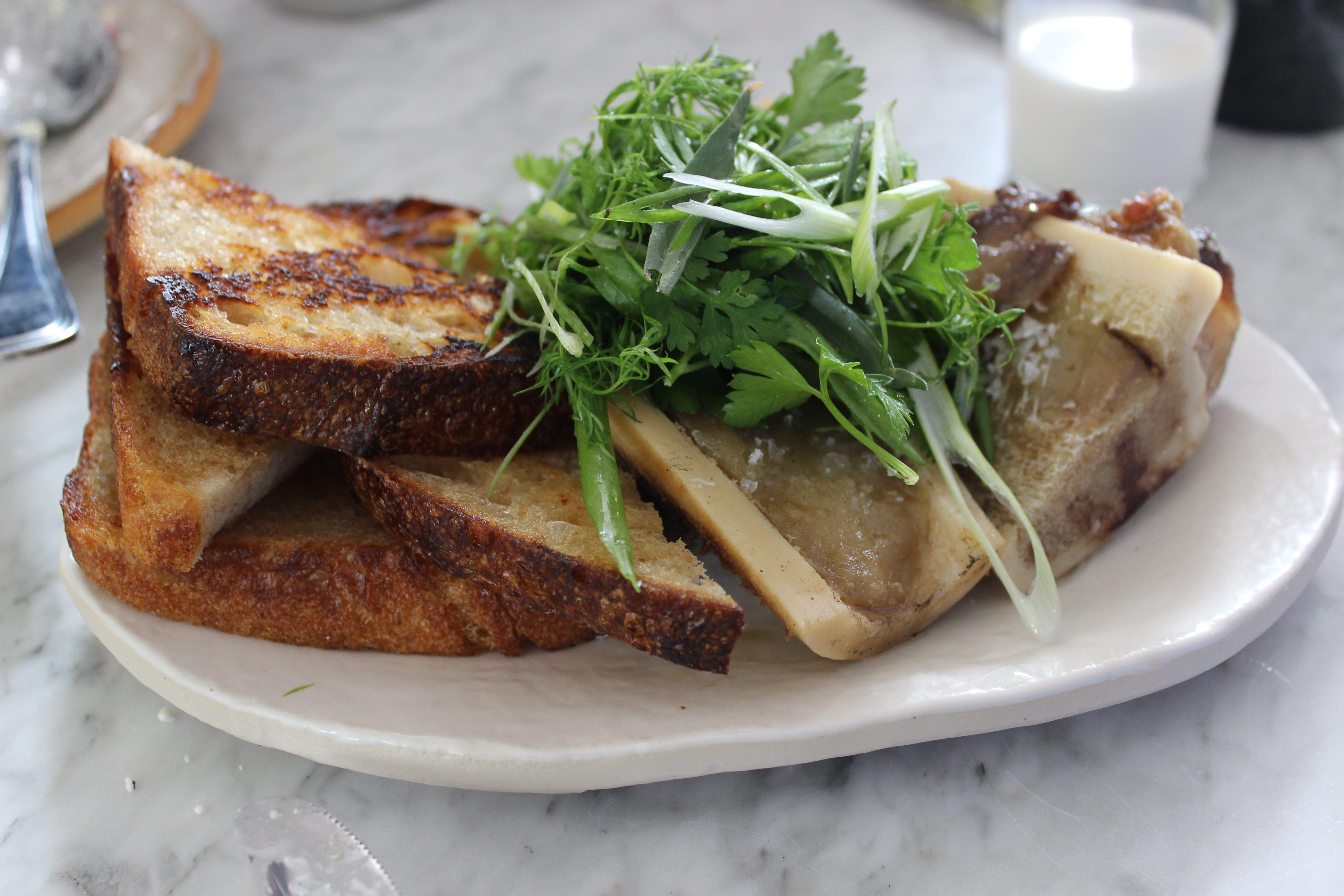 Bone Marrow ($13) was cut lengthwise, so we spread it on the toasted bread and then sprinkled the lightly dressed herb salad on top. Yum!