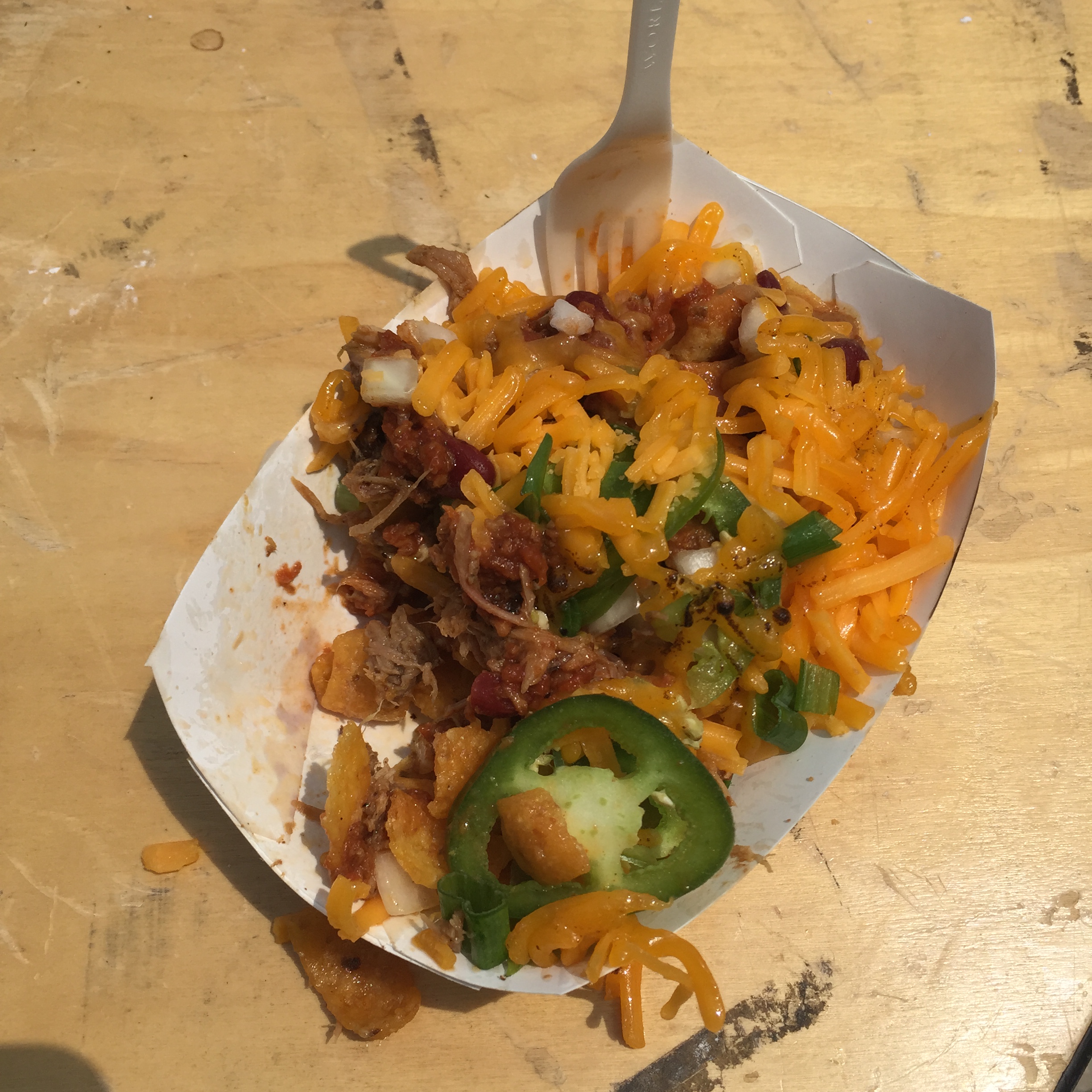 Fritos, Stewed Pork, Green Onions, Shredded Cheese….oh yeah.