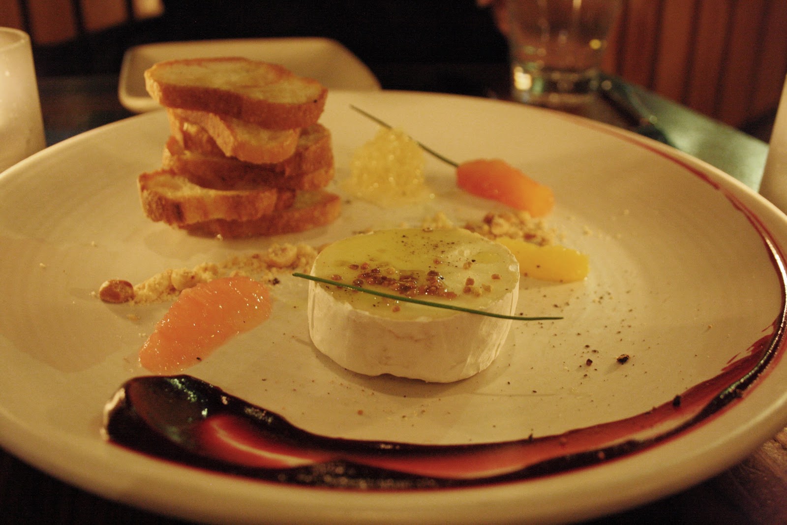 Our server brought over the Cheese Plate (marin camembert, beet jam, honey comb, hazelnut, toast, $17) for dessert. It was a colorful, beautiful plate that reminded me of a painter’s palette. I have a sweet tooth so I would check out the dessert menu next time, but this would be a good appetizer or small plate if you were just getting drinks, or for people who don’t have as much of a sweet tooth as we do.