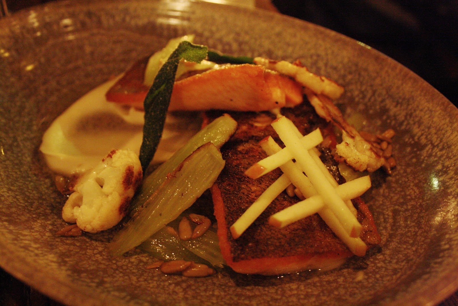 The Mt Lassen Trout (celery root, apple sunflower salad, sauce verjus, $29) was another dish that surprised me with its pairing of ingredients. This one didn’t come together as a cohesive dish as seamlessly as the asparagus, but I appreciated the experimentation.