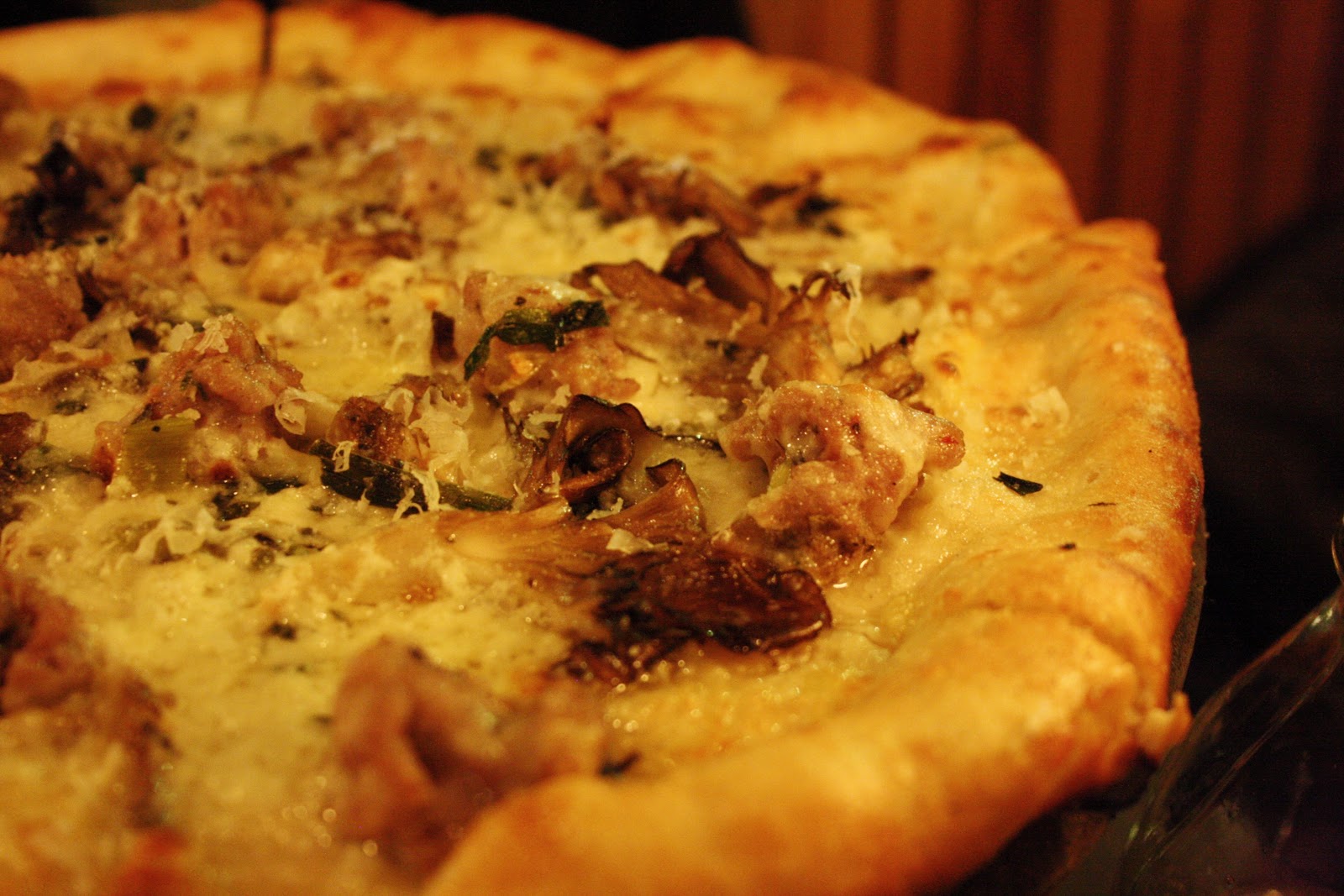 Since we loved the summery pizza from our last visit, we wanted to order pizza again and went with the Dancing Mushroom pizza (ricotta, mozzarella, green garlic, thyme, sausage, $27). The crust this time was thinner and crispier than the chewy, doughy crust we had over the summer. Both were good but Christina and I were split on which was our favorite. I was surprised to find out that the dough recipe was the same and that the change likely resulted from a difference in the oven temperature or a different person making the pizza.